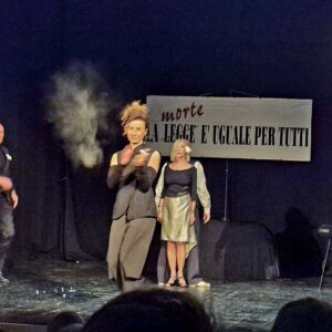 Teatro esaurito per il nuovo spettacolo presentato dalla compagnia Gli ImproBabili. I 4 attori scatenati in scena, sotto gli occhi di un pubblico attento e divertito, hanno proposto un originale e coinvolgente processo alla morte. “