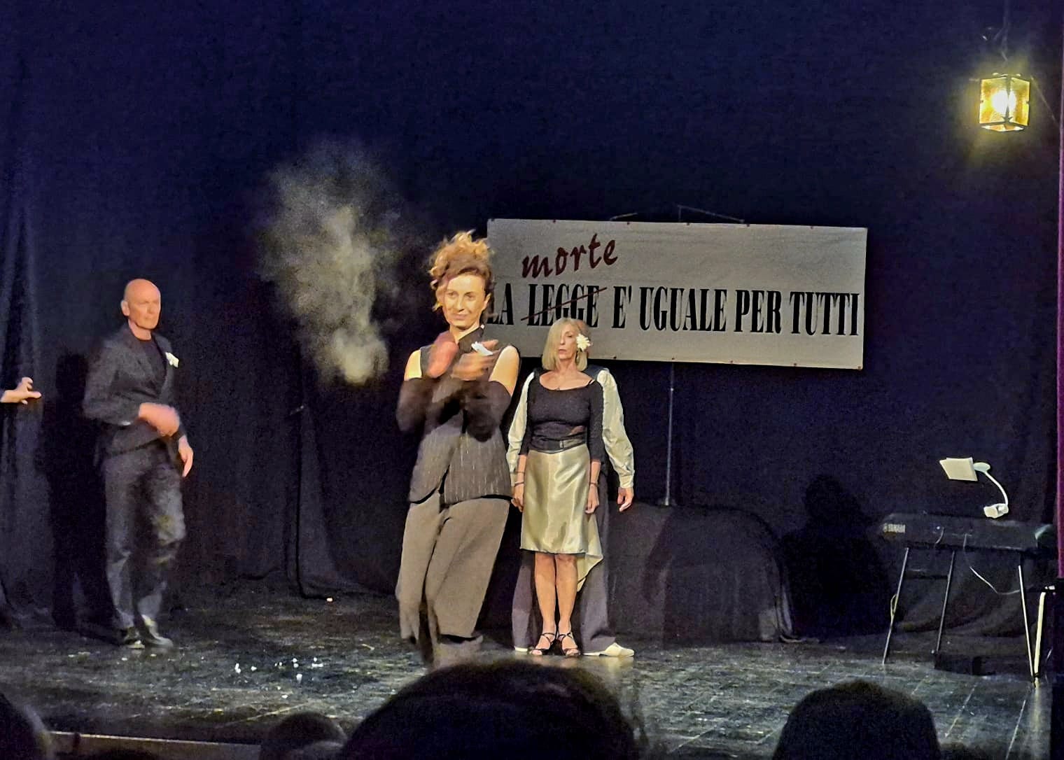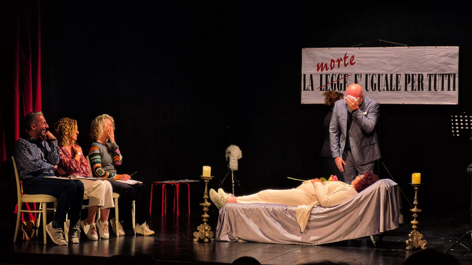 Teatro esaurito per il nuovo spettacolo presentato dalla compagnia Gli ImproBabili. I 4 attori scatenati in scena, sotto gli occhi di un pubblico attento e divertito, hanno proposto un originale e coinvolgente processo alla morte. “